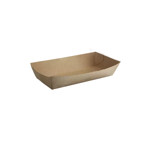 Our snack trays feature a flat base design, making them easy to store and perfect for quick service. These trays are designed to hold small snack portions, offering convenience and stability. Available in both plain and craft paper varieties, they come in various sizes to accommodate different types of food. Whether you’re serving a quick snack or a full meal, these trays provide a sustainable and efficient solution for your business.
